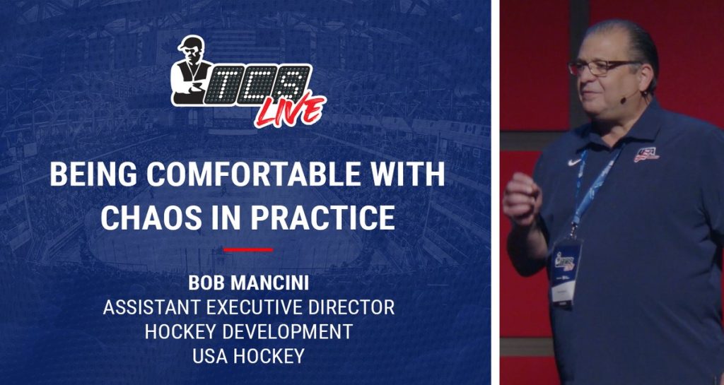 “Do your players know what to do when hockey breaks out?” During a 3-on-2 drill in practice, what are the odds you or another coach from your team would randomly knock the stick out of a player’s hands? What about during a 5-on-5 scrimmage, would you hand out a bad penalty to an undeserving player, just because? Well, chaos is the name of the game, according to Bob Mancini, Assistant Executive Director of Hockey Development with USA Hockey. Although practice seems like the time to run drills that build up your teams’ confidence and make everyone feel good about themselves,…