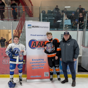 Congratulations to the Eastern Knights who won the MUNN Insurance U13 AAA Playoffs Gold Medal Game 6 to 3 over the Thunder Player of the Game for Thunder was Issac Lynch and player of the Game for Knights was Nicolas Hayward